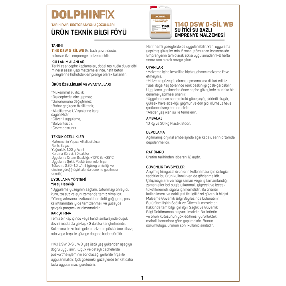 1140 DSW D-SİL WB SU İTİCİ SU BAZLI EMPRENYE MALZEMESİ