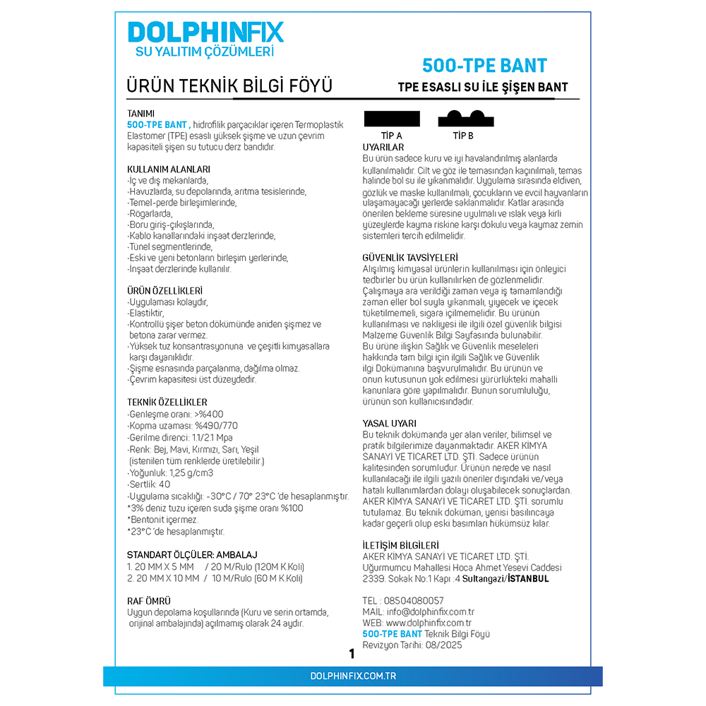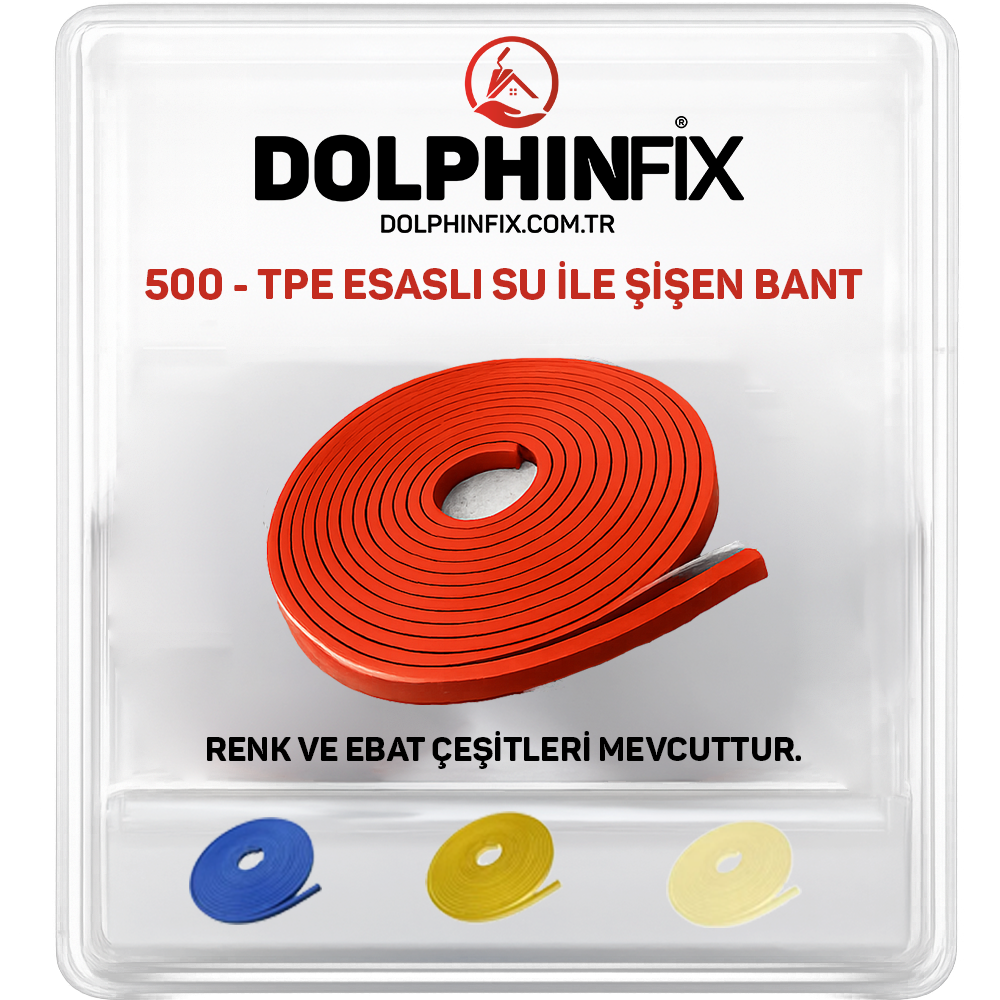TANIMI : 500-TPE BANT , hidrofilik parçacıklar içeren Termoplastik Elastomer (TPE) esaslı yüksek sisme ve uzun çevrim kapasiteli sisen su tutucu derz bandıdır.