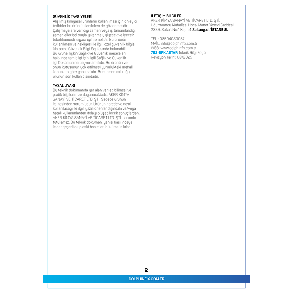 TANIMI : 762-EPK ASTAR, iki bilesenli, solvent bazlı epoksi astardır. Beton zeminlerde kullanılan, seffaf yapıda ve yüksek aderans saglayan bir üründür. Düsük viskozitesi sayesinde yüzeye derinlemesine nüfuz eder ve kaplama sistemleri için saglam bir astar olusturur.