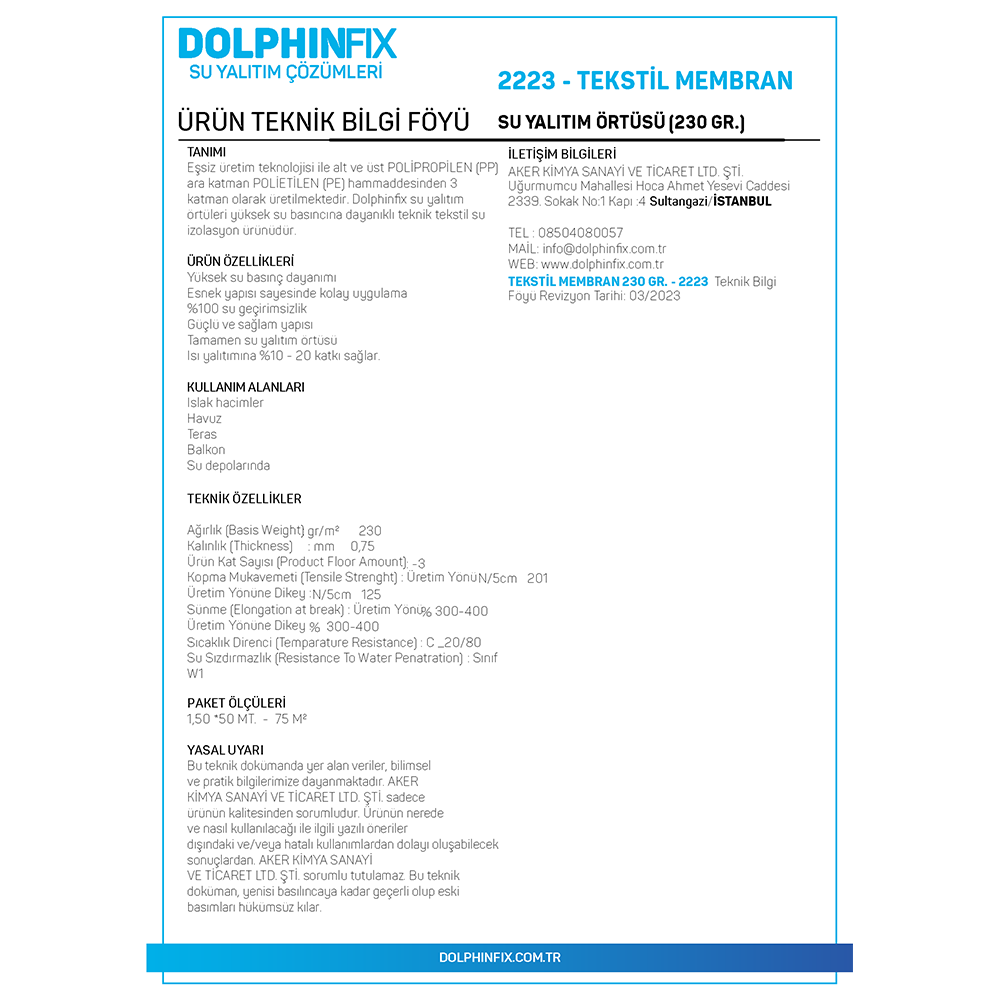 2223 – TEKSTİL MEMBRAN 230 GR.