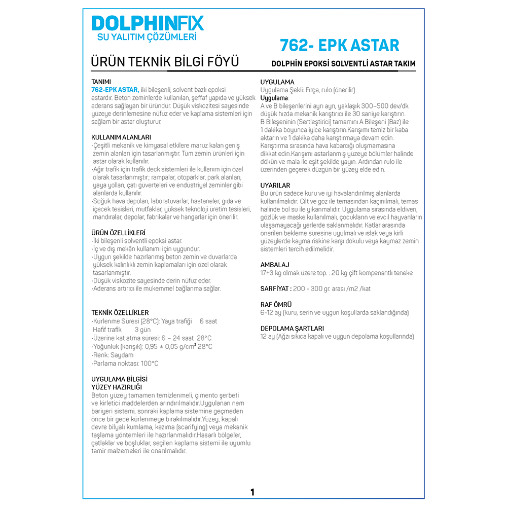 762- EPK ASTAR – DOLPHIN EPOKSI SOLVENTLI ASTAR TAKIM